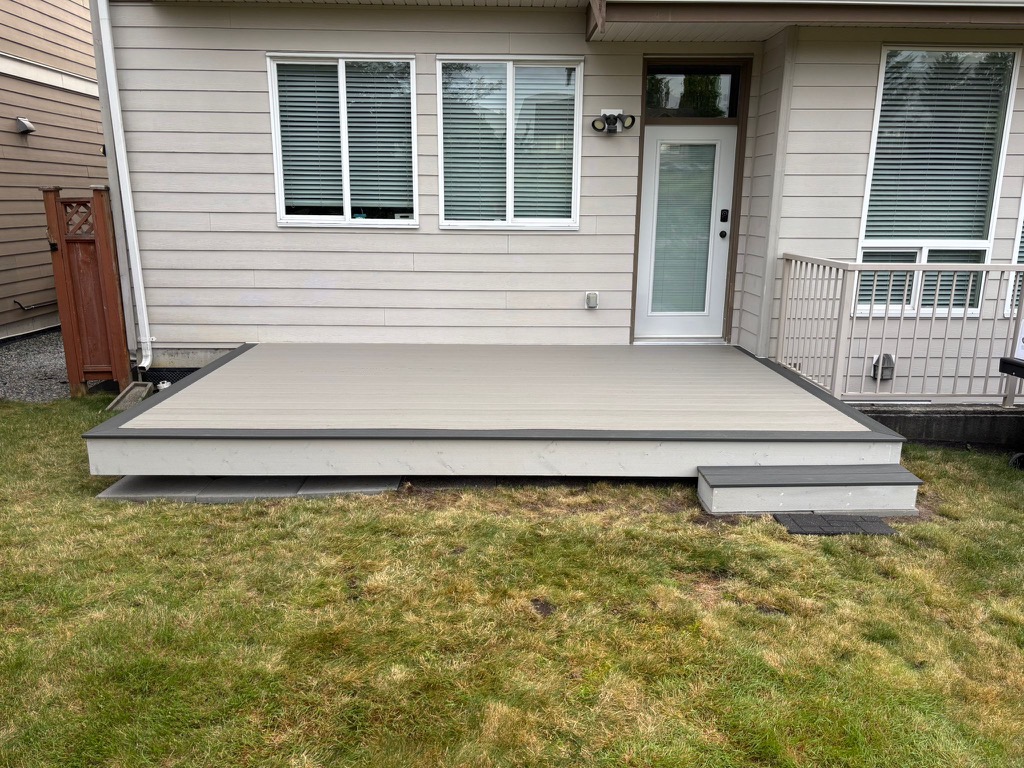 The wood boards were starting to rot and the client was looking for a low maintenance solution, so we replaced the wood decking with composite.